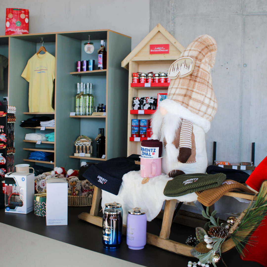 Entdecken Sie bei Ihrer Ankunft an der Seilbahn Grimentz – Espace Weisshorn unseren Souvenirladen, der ideale Ort, um Ihre Erinnerungen an die Berge noch länger wachzuhalten. Hier finden Sie authentische Produkte aus der Region, Kleidung und Accessoires mit dem Logo von Grimentz-Zinal sowie schöne Geschenkideen für jedes Alter.